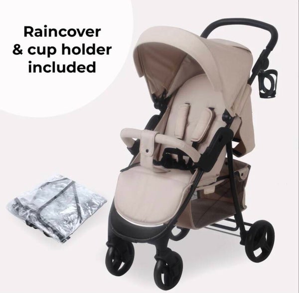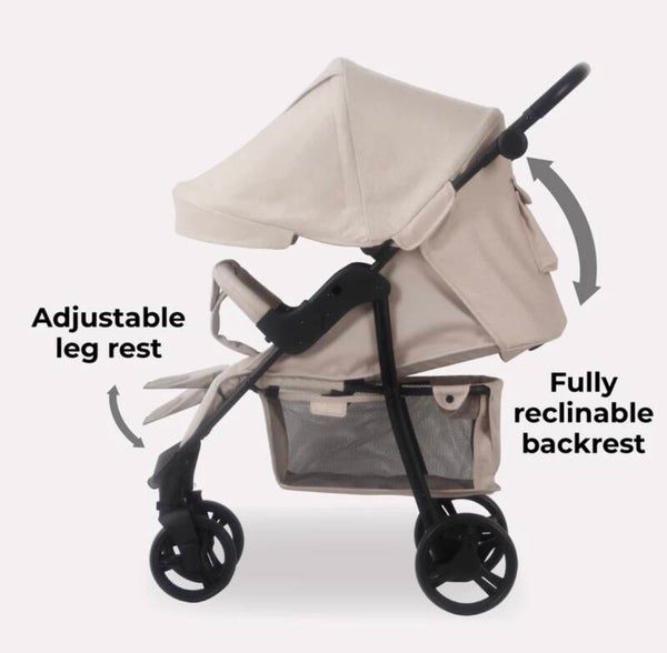 This stylish textured oatmeal pushchair from Billie Faiers forms part of her “Signature Range” at My Babiie. This MB30 pushchair is a lovely and stylish everyday pushchair which really looks beautiful! These pushchairs are lightweight, easy to push and have a large shopping basket. The colour contrasting wheels and rear leg make this pushchair extra stylish and the well padded seat and padded chest pads mean your little one will be extra comfy every second of their journey. The seat unit is fully reclinable making these pushchairs great for naps on the go too!