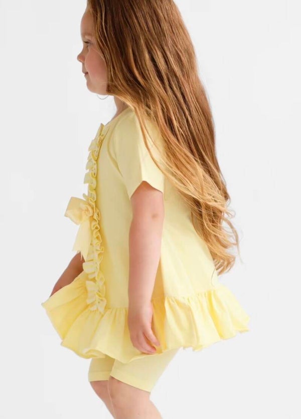 A girls 3 piece soft lemon tracksuit set. The Larosa set comes with leggings & also cute cycling shorts so you can make the most out of the warmer & chillier days.
