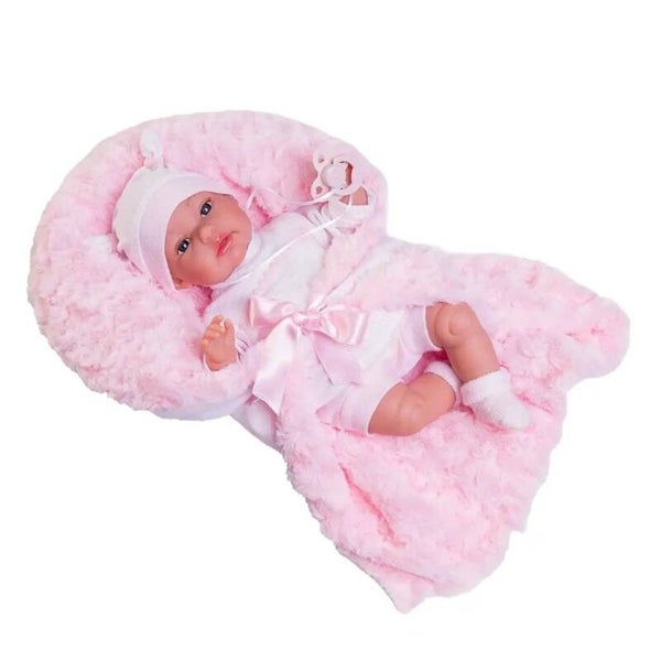 Dressed in a charming pink t-shirt and pants set, Toneta matches perfectly with her cute hat. To provide the ultimate comfort, she comes with a soft swaddle, allowing you to cradle her and give her all the love and affection she deserves.