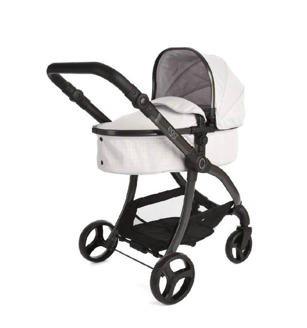 With 2 in 1 fabrics, the egg® Dolls Pram carry cot converts into a seat unit with simple poppers. The seat unit has a 3 point harness, suitable for dollies of all ages!
